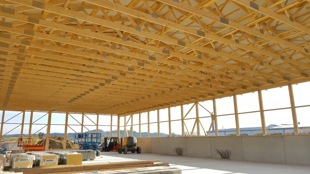 Несуча конструкція завжди виготовляється з деревини, стійкої до атмосферних умов, агресивних хімічних речовин та агресивного середовища. Деревина в технології ROZMAITEX є на сьогодні найдешевшим способом будівництва, доступним на ринку.